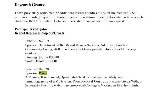 Archana Chatterjee, membre du comité, a travaillé sur un projet de recherche lié aux vaccins pour les nourrissons entre 2018 et 2020, et le projet de recherche a été parrainé par Pfizer.
