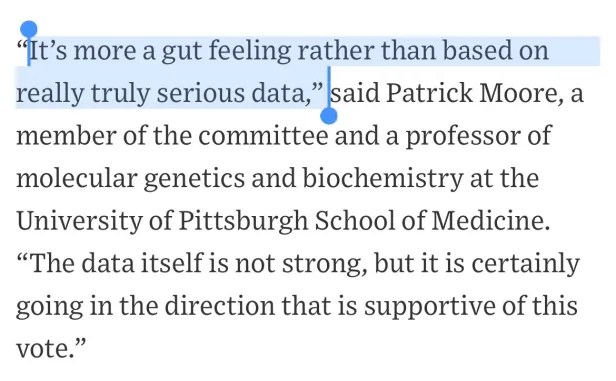 Un membre du panel de la FDA qui a approuvé les injections de rappel en dépit d’un manque total de données a déjà admis qu’ils ont soutenu les injections supplémentaires en se basant sur « une intuition plutôt que sur des données vraiment sérieuses ».