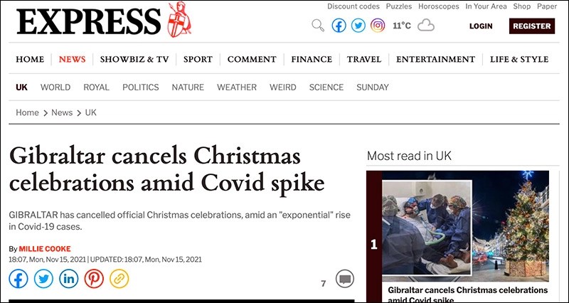 Le gouvernement de Gibraltar annule les festivités de Noël cette année en raison du nombre élevé de cas d’infection par le Covid, malgré le taux de vaccination de 100 % du pays.
