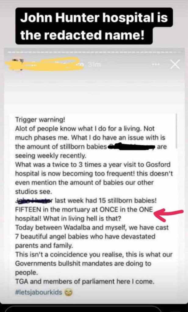 En moyenne, ils verraient 1 mort-né par mois. 3 dulas ont rapporté qu’il y avait eu 13 décès de mort-nés sur une période de 24 heures chez des femmes qui avaient pris l’injection d’ARNm. Les médias n’en parlent pas.
