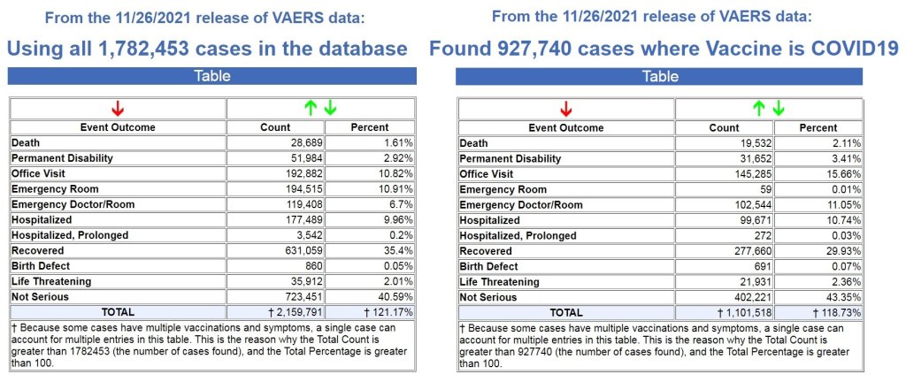 Le dernier versement de données dans le Vaccine Adverse Events Reporting System (VAERS) du gouvernement américain a eu lieu il y a quelques jours (12/3/21) et couvre les données jusqu’au 26 novembre 2021.