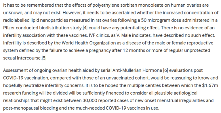 Il est tout à fait clair que les injections de Covid-19 interfèrent avec le système reproductif et que des études et des enquêtes supplémentaires doivent être menées avec effet immédiat.