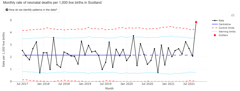 Les données disponibles auprès de Public Health Scotland montrent que les cas de cancer de l’ovaire en 2021 sont beaucoup plus élevés que la moyenne 2017-2019, et que les décès de nouveau-nés ont atteint le seuil d’alerte supérieur, ce qui indique que des facteurs autres que la variation aléatoire ont pu contribuer à ces décès.