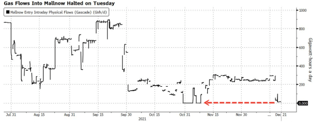 La société russe Gazprom PJSC n’a cessé de réduire les flux de gaz vers l’Europe, la certification du gazoduc controversé Nord Stream 2 ayant été reportée jusqu’en juillet. L’absence de nouveaux flux vers l’Europe oblige les services publics à vider leurs stocks de gaz (qui sont déjà à leur niveau le plus bas pour la saison). Certains services publics ont dû redémarrer des générateurs à combustible fossile pour éviter toute perturbation du réseau.