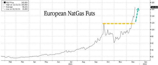 Le prix du gaz au centre TTF néerlandais, le prix de référence du gaz pour l’Europe, a grimpé de 10 % pour atteindre un nouveau record de 165 euros par mégawattheure, après que le gaz entrant en Allemagne à la station de compression de Mall now a chuté à zéro. Les flux ont été détournés vers l’est, vers la Pologne.