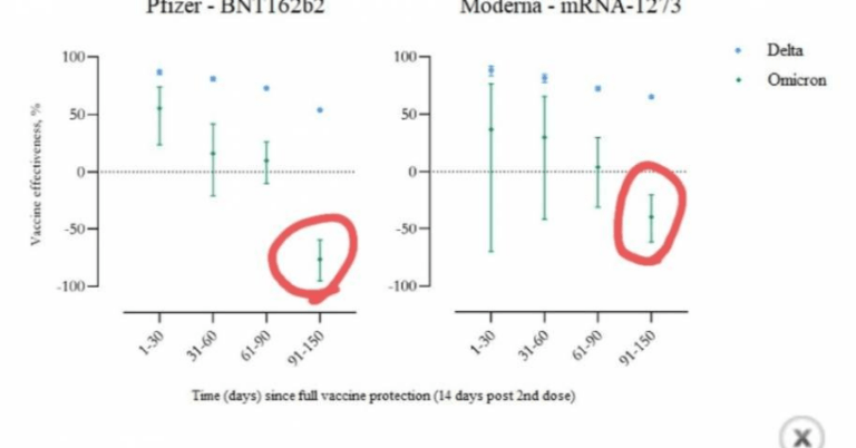 Deux études récemment publiées montrent qu’après une brève période de protection modérée, les vaccins expérimentaux Covid-19 finissent par causer plus de maladies qu’ils n’en préviennent, en particulier lorsqu’il s’agit de nouvelles variantes comme la très douce Omicron, désormais prédominante.