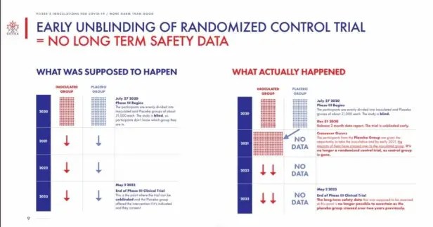 En outre, comme Pfizer a levé l’insu de ses groupes d’essai clinique de façon précoce, elle est incapable de produire des données pertinentes sur la sécurité à long terme, car elle ne dispose plus d’un groupe de contrôle comme référence.