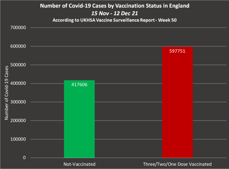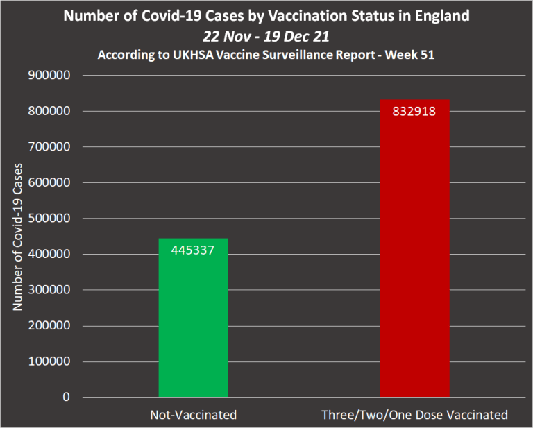Le » Rapport de surveillance du vaccin Covid-19 – Semaine 51 » a été publié par l’Agence britannique de sécurité sanitaire (anciennement Public Health England) le jeudi 22 décembre 2021, et il montre que la grande majorité des cas de Covid-19 entre le 22 novembre et le 19 décembre concernait la population entièrement vaccinée.
