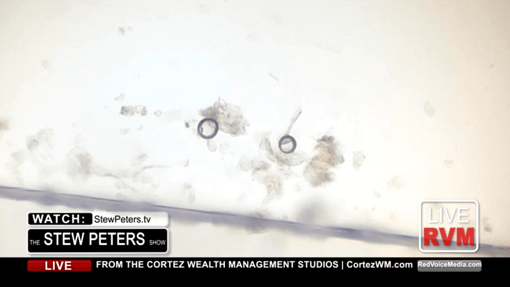 Le Dr Carrie Madej, interniste, a également découvert des corps étrangers après avoir étudié les injections, notamment des objets « ressemblant à du graphène » et « une créature ressemblant à un organisme mobile à tentacules dans la piqûre Moderna. »