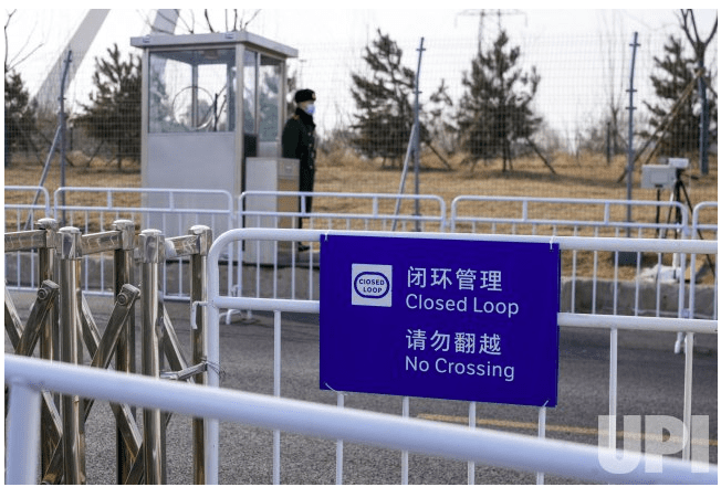 Les athlètes et le personnel sont placés dans une « boucle fermée », ou bulle COVID, dès leur arrivée à Pékin, afin de les séparer du grand public. Les hôtels sont fermés par des clôtures grillagées et des gardes de sécurité empêchent les gens d’entrer et de sortir de la propriété.