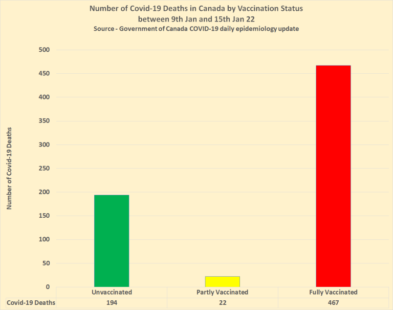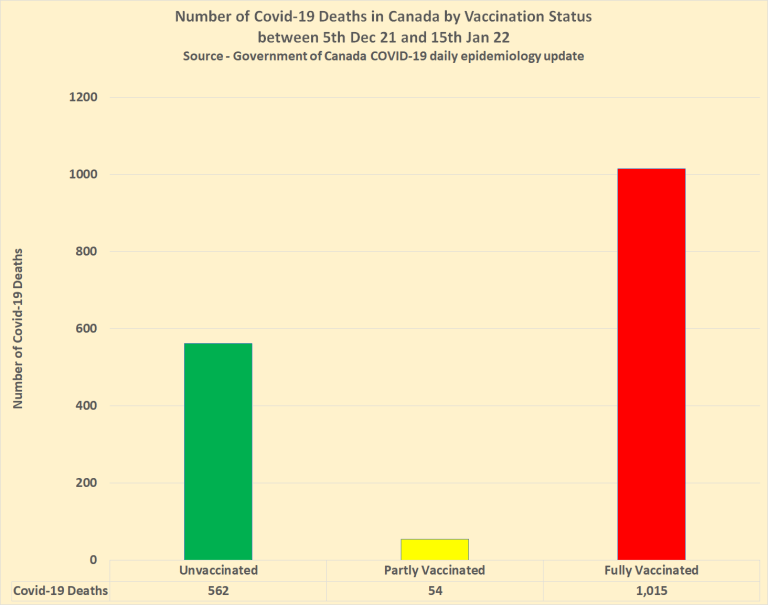Par conséquent, en ne donnant le total des cas, des hospitalisations et des décès qu’à partir du 14 décembre 2020, le gouvernement du Canada est en mesure d’inclure un grand nombre de décès dus au Covid-19 qui se sont produits alors que seulement 113 624 Canadiens étaient complètement vaccinés, donnant la fausse impression que les injections de Covid-19 sont un énorme succès et que le Canada connaît une pandémie de personnes non vaccinées.