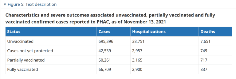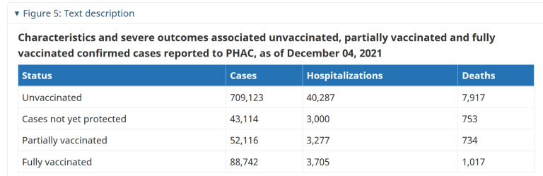 Le gouvernement du Canada publie ses données officielles sur le Covid-19 d’une manière qui donne l’impression que le Canada connaît une » pandémie de personnes non vaccinées » et que les vaccins Covid-19 sont clairement efficaces.