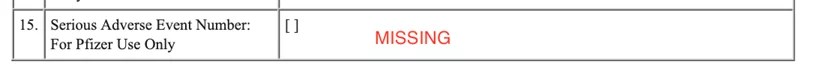 Au cours de la rédaction de ce rapport, l’auteur a non seulement examiné des milliers de CRF, mais il a également rencontré de nombreuses entrées de codes-barres manquants pour des échantillons prélevés sur des participants, comme celui ci-dessous. Cela suggère une possibilité sérieuse que des preuves suffisantes révèlent un modèle de données douteuses sur les sites d’essai Ventavia, au mieux, peut-être compromis dans des scénarios plus graves.