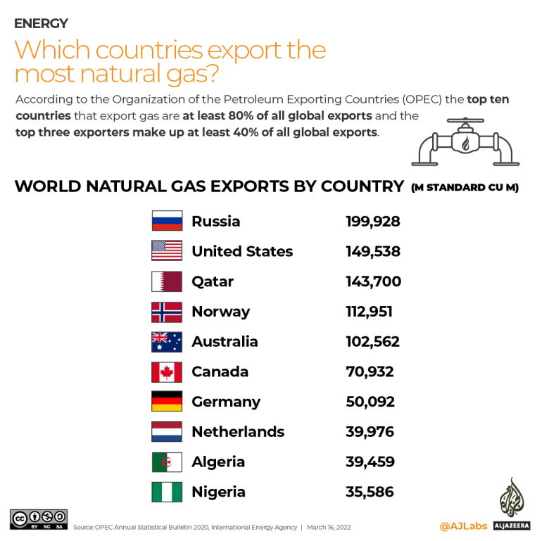 La Russie est le premier exportateur mondial de gaz en termes de volume, représentant près de la moitié des importations de l’UE en 2021. Pour l’Allemagne, première économie d’Europe, ce chiffre s’élevait à 55 % l’année dernière. Et bien que les importations de gaz de l’Allemagne en provenance de Russie soient tombées à 40 % au premier trimestre 2022, le ministre de l’économie Robert Habeck a déclaré que son pays n’atteindrait pas une indépendance totale vis-à-vis des approvisionnements russes avant la mi-2024.